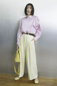 シルエットの美しさが際立つ、ミラオーウェンの2タックワイドパンツ。ハンサムな雰囲気の中に、柔らかな生地感が女性らしさも添えてくれます。春に向けて軽やかさを意識しつつ、飽きがこなくて、コーディネートの主役になれるカラーを選びました。
