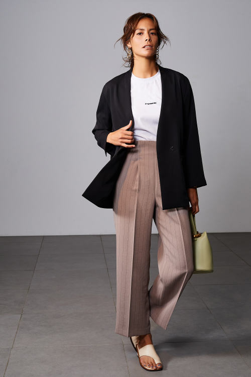 無駄を削ぎ落とし、限りなくシンプルに仕上げているから着回しもしやすい。