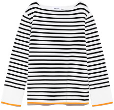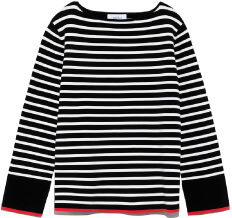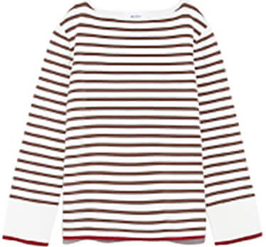 秋冬に楽しみたい、遊び心あふれるボーダーニット。袖口にあしらったバイカラーのラインがポイント。伸縮性のある着心地の良い素材を使用しています。